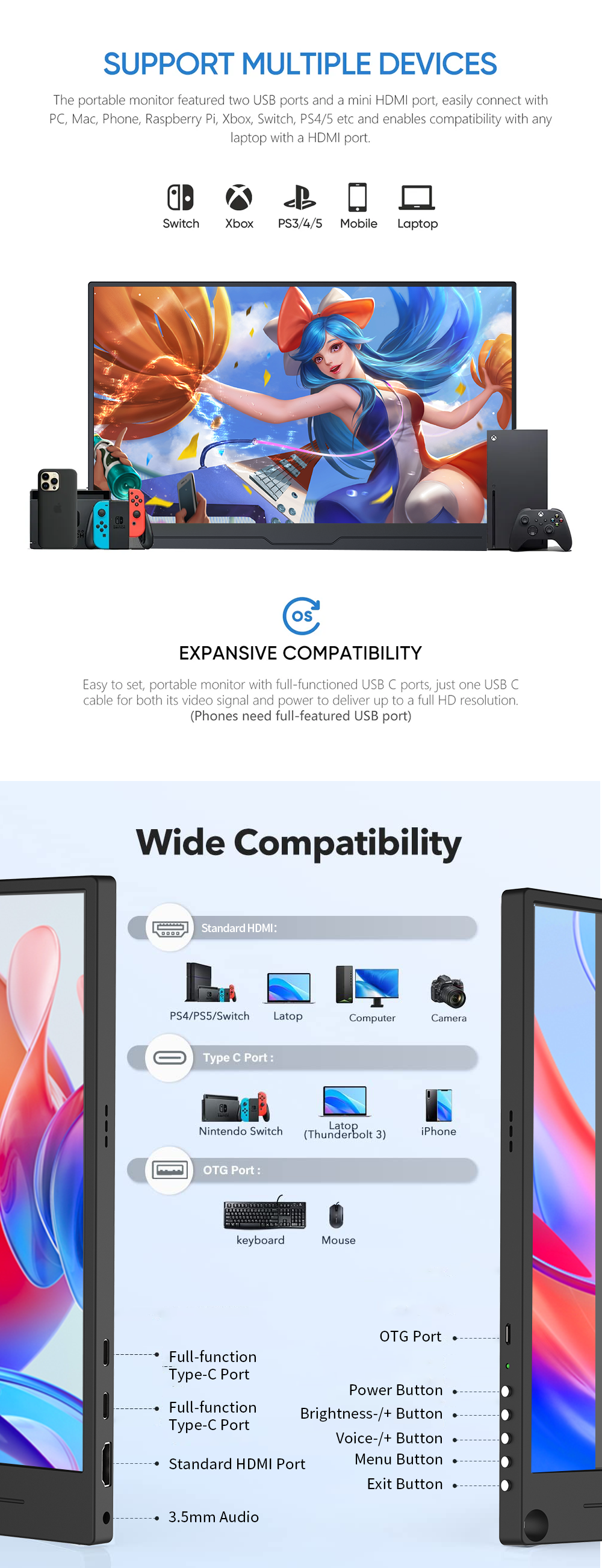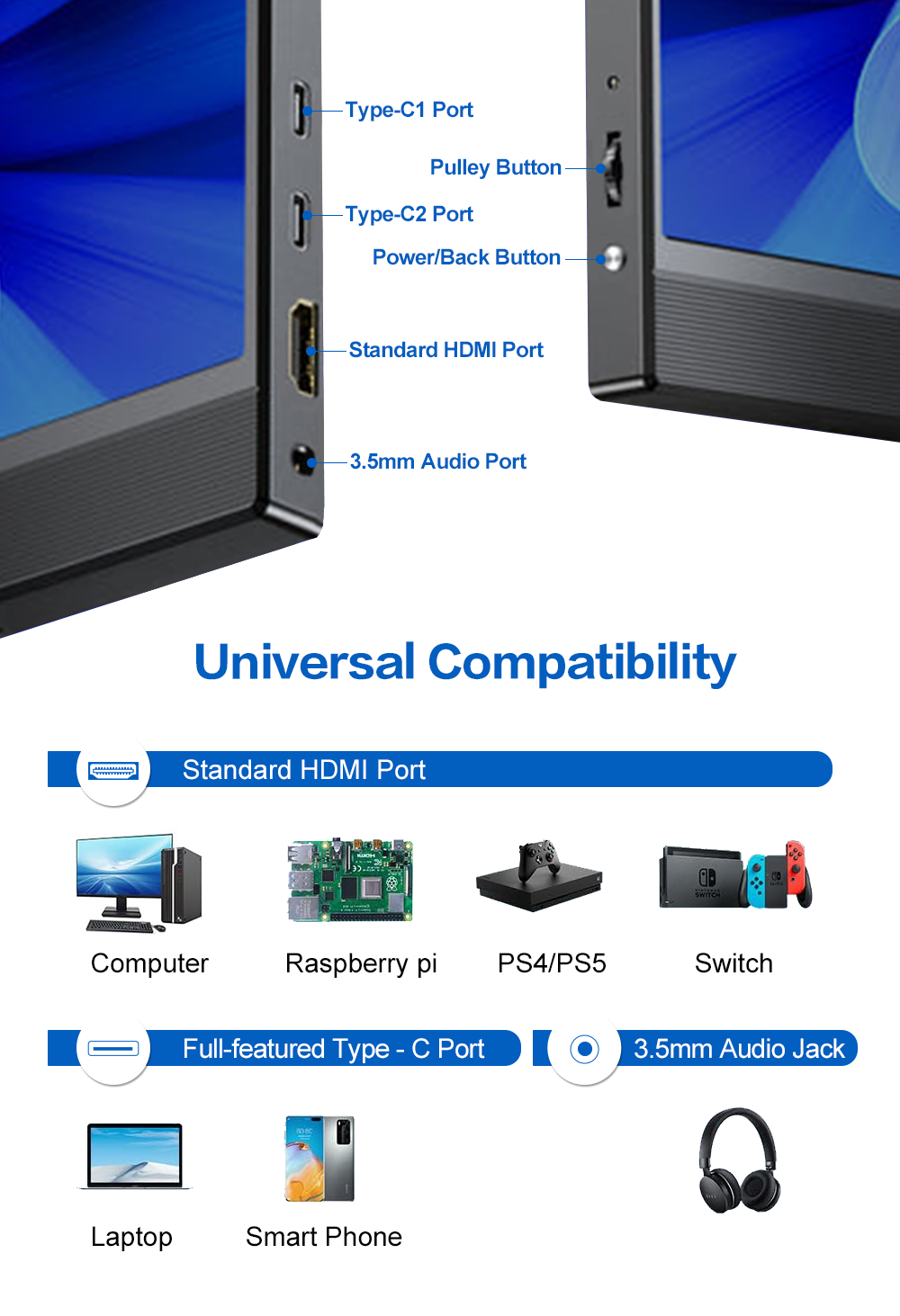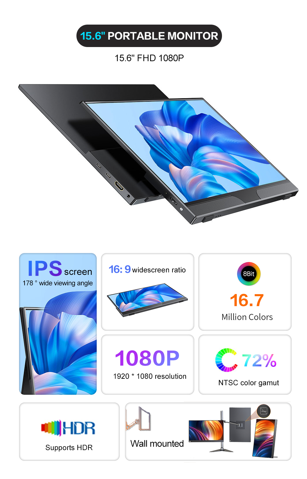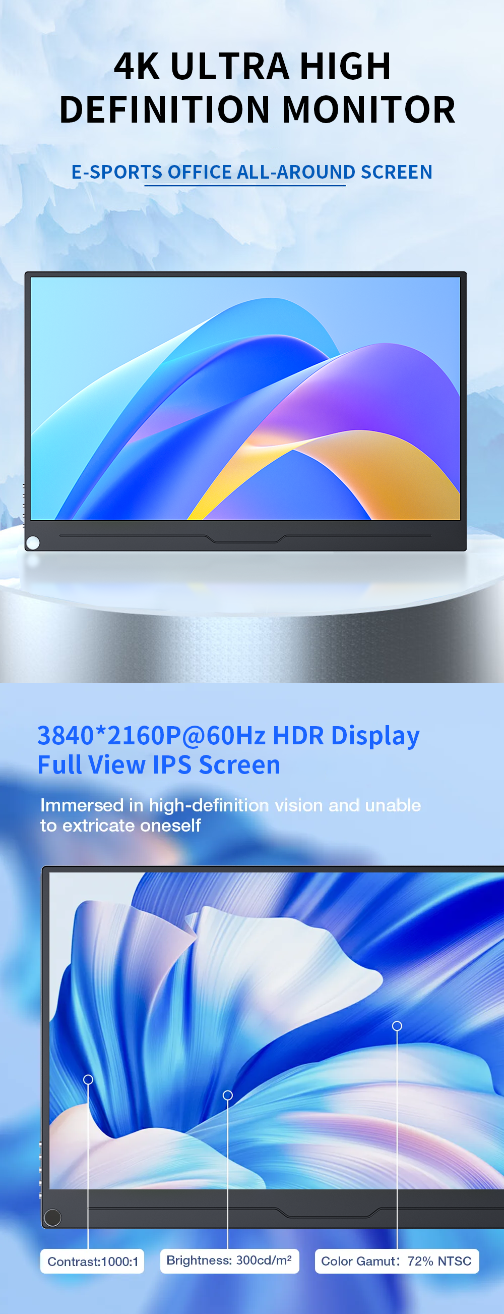 Howens 15.6" 4K 3640*2160 Gaming Portable Monitor USB-C HDMI External Screen Second Display for Xbox Switch PS5 4 Laptop Live Streaming, Programming, Coding, Image Editing