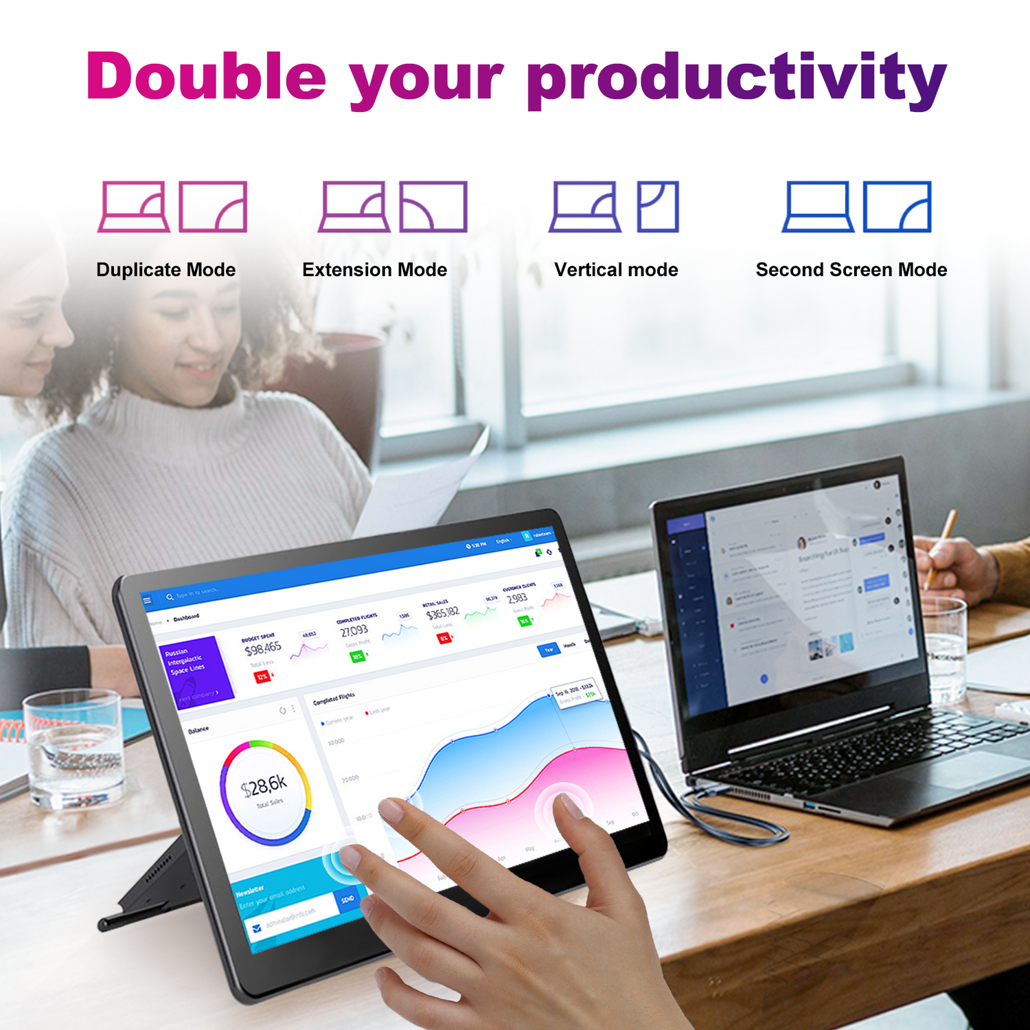 ✅The portable monitor is equipped with an IPS touch screen, which can easily respond with the press of a button.It can connect to PCs, laptops, game consoles, and smartphones, and can be used in various daily scenarios such as office work, online meetings.