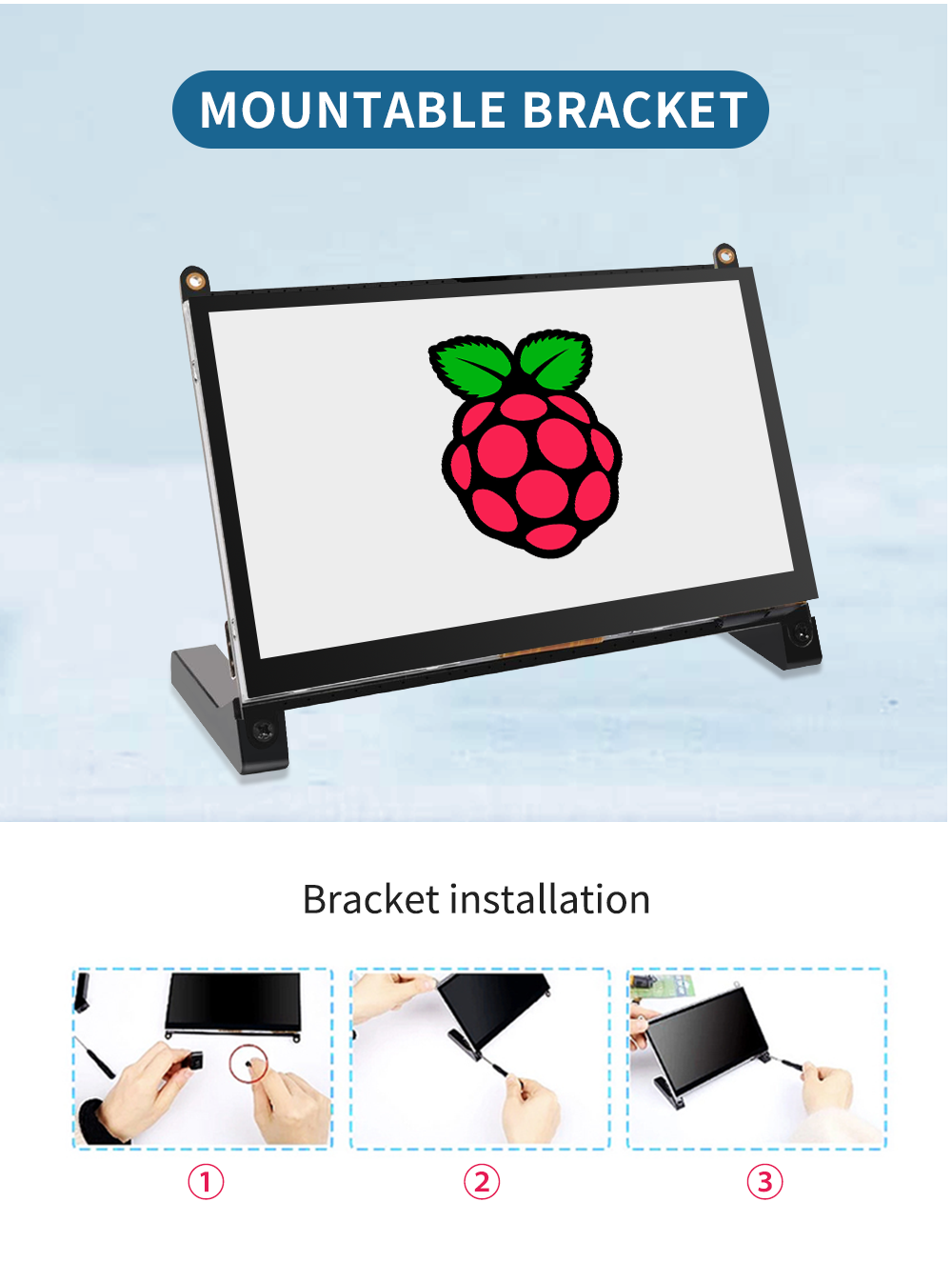 Perfect for all versions of Raspberry Pi - the included HDMI cable makes the connection between the monitor and the Raspberry Pi4/5 simple. If you have other Raspberry Pi, standard HDMI cable can also help you. We also provide a monitor bracket with screws.