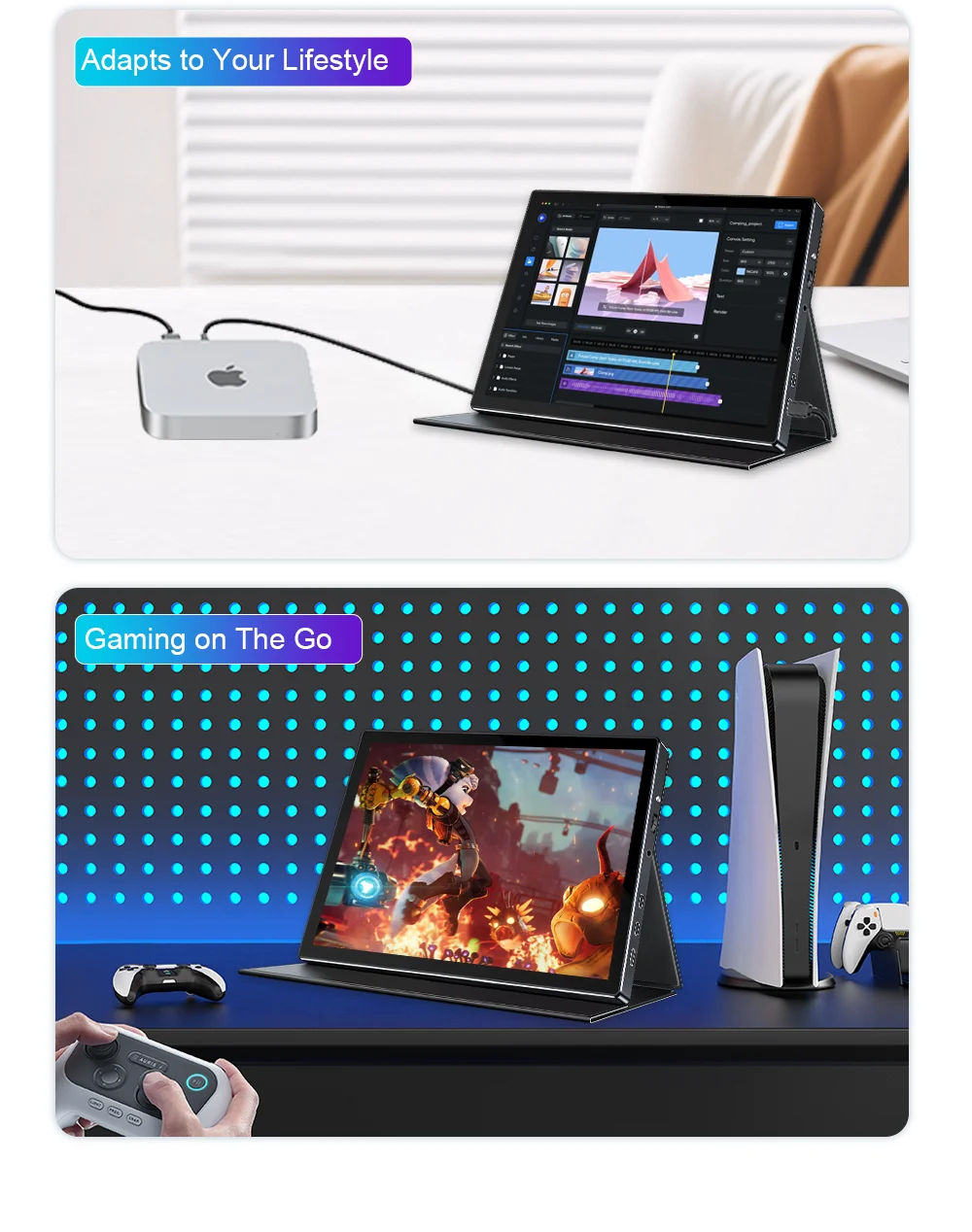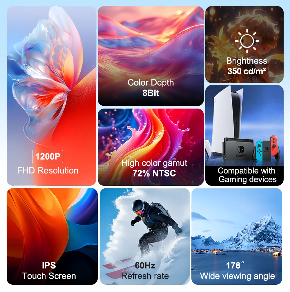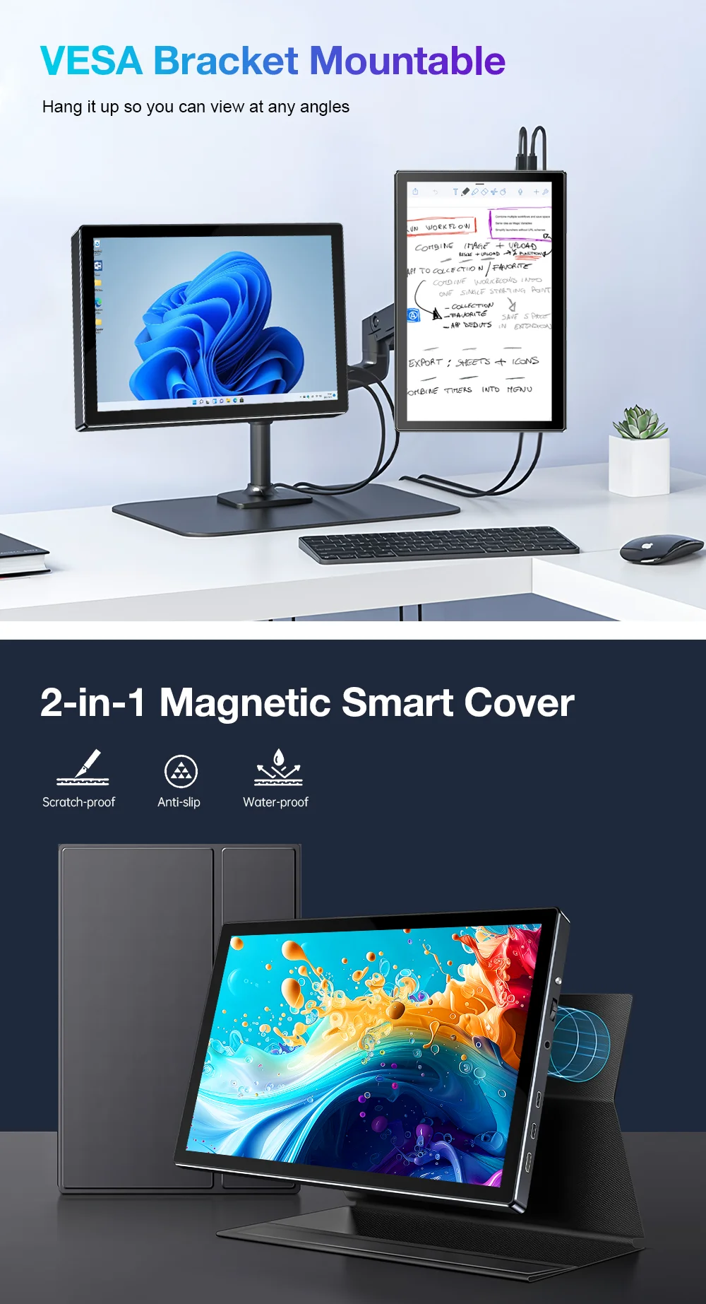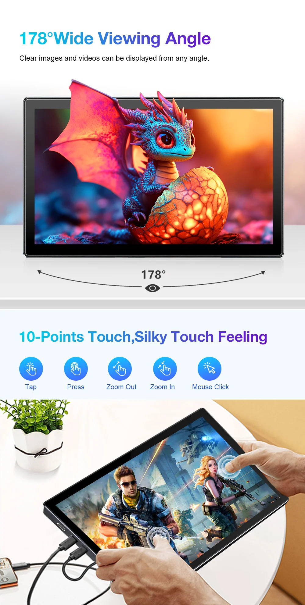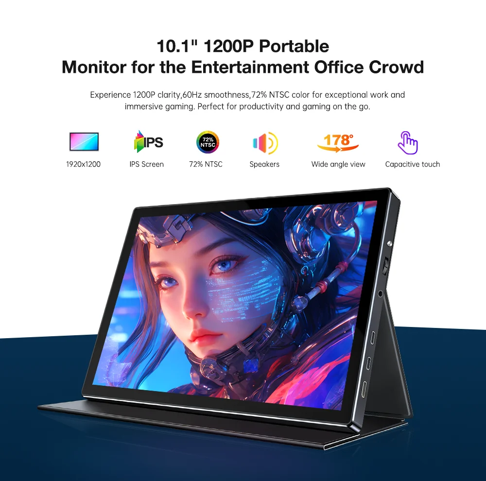 10.1 inch portable monitor support Typc -c/HDMI ,1920x1200 Touchscreen IPS Monitor, Leather Case VESA 75*75mm, for Mobile Phone