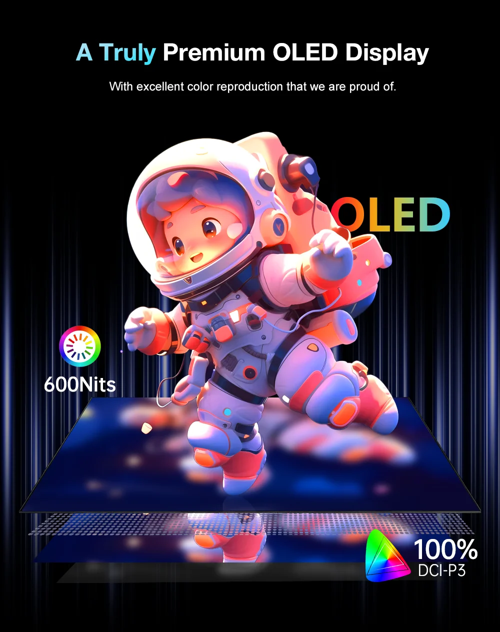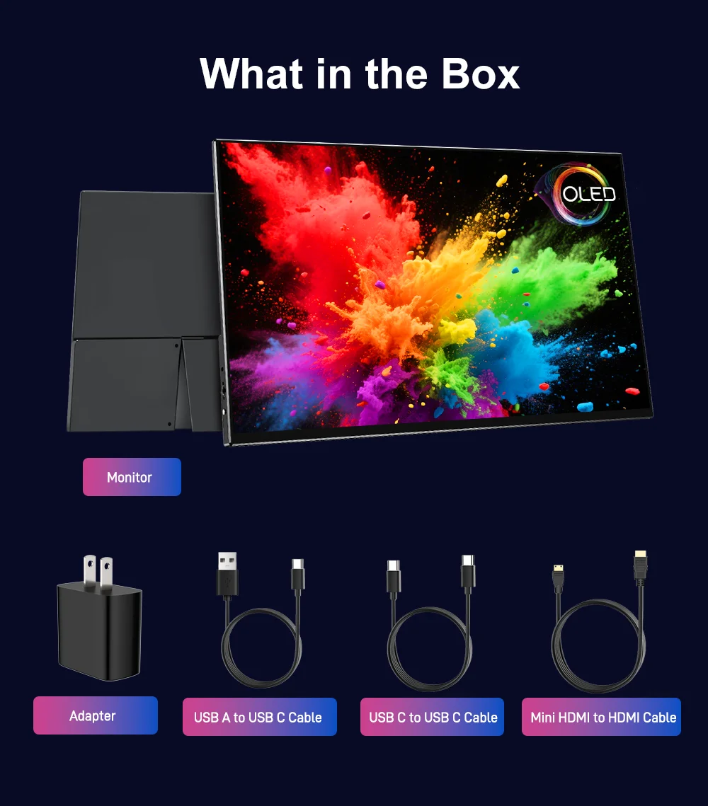 15.6 inch 3.5K OLED portable screen, resolution 3456X2160, supports VESA, compatible with mobile phones/Switch/PS5/Xbox/laptops