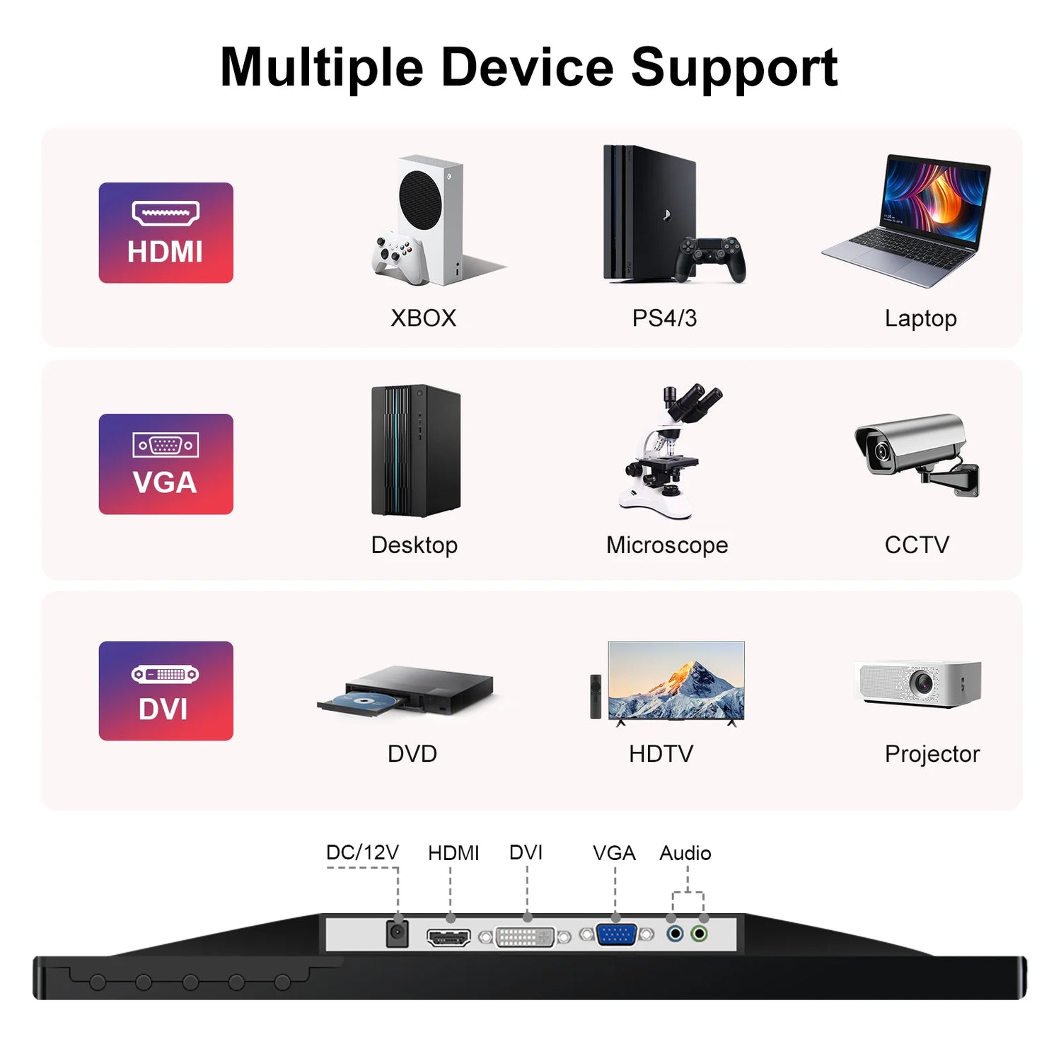 15.6 inch IPS Monitor Full HD 1920x1080 Multi-Interface HDMI VGA DVI VESA Support for Automation Control Office Meeting Gaming
